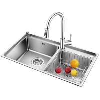 欧琳 水槽双槽006A 304不锈钢洗菜盆洗碗池 加厚厨房大双槽 抽拉款(带龙头、沥水篮、皂液器)