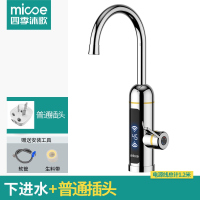 电镀银[大屏数显+普通插头] 厨房款 下进水 四季沐歌电热水龙头即热式快速过水热冷热两用厨房卫生间小厨宝