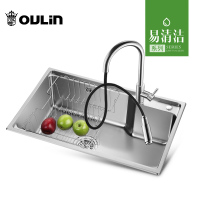 欧琳易清洁水槽单槽CX6801N 厨房304不锈钢洗菜盆洗碗池套餐含龙头加厚 配CFL003不锈钢抽拉龙头