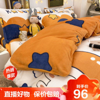 [旗舰直营]冬天双面加绒保暖四件套珊瑚绒单被罩牛奶绒被套带毛毛套件冰星梦