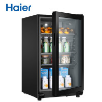 海尔冰吧冷藏家用单门化妆品冰箱小型饮料柜办公室透明玻璃门茶叶保鲜柜红酒柜 98L全冷藏+压缩机制冷