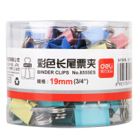 得力(deli)8555ES 彩色长尾夹19mm燕尾夹票夹票据夹铁夹子书夹办公用品 40个/筒 2筒