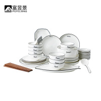 富昱景 十人食碗碟餐具套装网红家用情侣碗陶瓷日式碗碟简约北欧ins碗盘套装