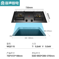 容声燃气灶双灶家用嵌入式台式灶台黑晶防爆钢化面板5.2kW天然气猛火灶Q2321