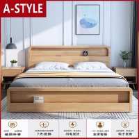 苏宁放心购日式实木床1.8米北欧现代简约橡木1.5主卧家具木蜡油带插座双人床A-STYLE家具