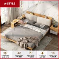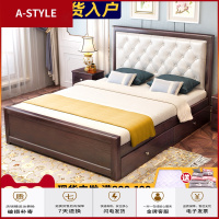 苏宁放心购实木床1.8米现代简约北欧卧室双人床婚床1.5米经济型布艺实木大床A-STYLE家具