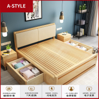 苏宁放心购北欧全实木床现代简约原木1.8米1.5双人带软靠气动高箱储物主卧室A-STYLE家具