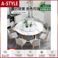 苏宁放心购北欧大理石圆形轻奢餐桌铁艺圆餐桌带转盘家用餐桌椅组合现代简约A-STYLE