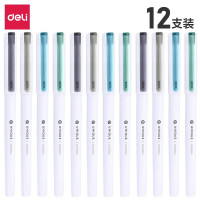 得力(deli)DL-A117雾透系列学生中性笔签字笔 冷淡无印风 0.5mm全针管12支/盒 黑色