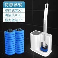 [苏宁自主品牌]百邻一次性马桶刷子无死角家用套装卫生间挂墙式洗厕所清洁神器带底座20个替换装