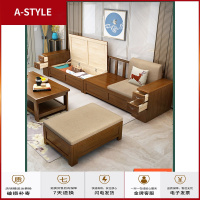 苏宁放心购实木沙发冬夏两用小户型组合中式三人布艺储物农村木沙发客厅家具A-STYLE家具