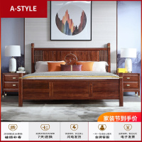 苏宁放心购新中式全实木床1.8米乌金木双人床主卧婚床现代中式轻奢别墅家具A-STYLE家具