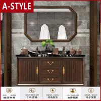 苏宁放心购新中式现代中式仿古实木落地浴室柜卫浴柜卫生间洗手柜洗脸盆组合A-STYLE