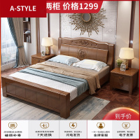 苏宁放心购新中式实木床主卧1.8米双人简约现代1.5M框架高箱储物婚大床A-STYLE家具