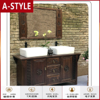 苏宁放心购新中式实木浴室柜组合榆木现代简约洗手池洗脸盆卫生间洗漱台盆柜A-STYLE