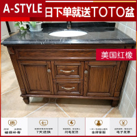 苏宁放心购(定制)卫浴实木定制浴室柜组合红橡木美式洗手台洗脸盆落地卫生间洗漱台A-STYLE