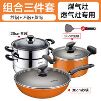 橙色3件套[明火/燃气专用] 苏泊尔不粘锅三件套装锅具全套家用不沾平底炒锅汤锅电磁炉燃气灶