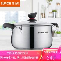 (24CM 适用3-5人) 苏泊尔(SUPOR)304不锈钢时尚小红圈汤锅20/22/24cm复底炖锅火锅煮面锅 燃气电