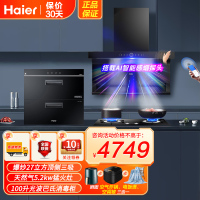 [自清洗]海尔Haier吸油烟机顶侧三吸27m³暴风擎家用天然气烟灶柜套装EC729UD+Q2BE50+100升消毒柜