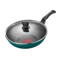 九阳不粘锅炒锅麦饭石色不粘炒锅电磁炉锅炒锅电磁炉燃气灶通用加深火红环感温不沾锅具 28CM火红环感温