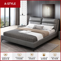 苏宁放心购轻奢真皮床双人床1.8米后现代时尚主卧简约北欧布艺床榻榻米婚床A-STYLE家具