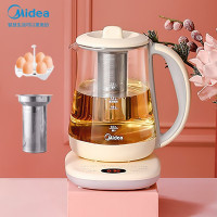 美的(Midea)养生壶 煮茶器煮茶壶 电水壶烧水壶花茶壶电热水壶 迷你玻璃热牛奶 带蛋架和滤网1.5L