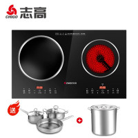 . 志高电磁炉嵌入式双灶3500W大功率猛火爆炒电灶家用双灶电磁灶电陶炉凹面双头电灶套装一电一陶定制商品