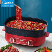 美的(Midea)电火锅 电炒锅 电煮锅 火锅锅家用5L大容量火锅电热锅多用途锅鸳鸯锅 智能防干烧 [红色]4.7L料理