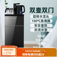 美菱立式家用饮水机下置水桶多功能冷热全自动桶装水智能茶吧机 炫酷黑[双壶双门+旋转龙头出水+下置水桶款] 温热