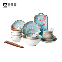 富昱景 景德镇碗碟套装家用网红日式餐具创意盘子饭碗汤面碗筷组合礼盒装