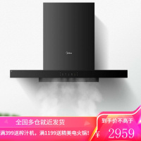 美的抽油烟机家用厨房智能厨电顶吸式小型欧式大吸力自动清洗 浅灰色