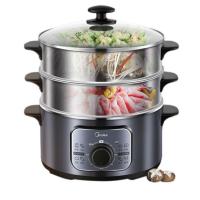 美的电蒸锅多功能家用全自动断电不锈钢三层大容量中式蒸笼饭菜锅10L 银灰色
