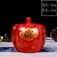 景德镇陶瓷摆件中国红招财进宝苹果花瓶创意储物罐现代家居装饰品 无盖招财进宝