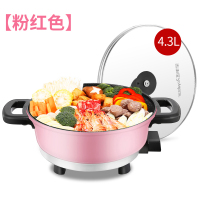 荣事达电炒锅加厚家用火锅一体式炒菜多功能蒸煮煎烤插电煎锅烤锅 粉红色4.3升
