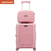 Lucky Club高颜值前置电脑行李箱男女密码开口商务旅行小型多功能拉杆箱子樱花粉24寸