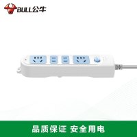 公牛(bull)GN-607全长3米4插位总控开关新国标带儿童保护门大孔间距插座/接线板/排插/拖线板/插排蓝白色
