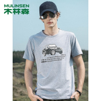 木林森(MULINSEN)夏季新款男士T恤圆领薄款印花时尚宽松简约短袖体恤衫男