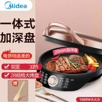 美的电饼铛电饼档家用双面加热自动煎饼锅挡称加深加大可拆洗拆卸 旋钮式玫瑰金