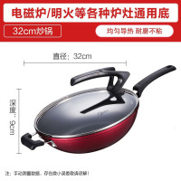 美的不粘锅麦饭石炒锅电磁炉燃气煤气灶适用家用炒菜锅专用平底锅 32cm-酒红色燃磁通用