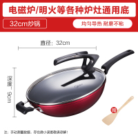 美的不粘锅麦饭石炒锅家用炒菜锅电磁炉燃气灶专用锅煤气灶平底锅 *32cm-酒红色燃磁通用
