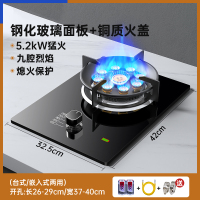 煤气灶大火力燃气灶单灶家用台式嵌入煤气灶天然气液化气节能灶具 5.2kw防爆玻璃+防风炉架+电量显示-液化气