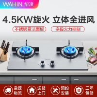 美的出品华凌燃气灶双灶家用 天然气液化煤气猛火台嵌入式炉具 4.5kW+不锈钢 液化气