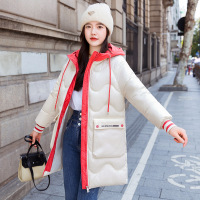 加肥加大码棉服女冬季连帽撞色外套韩版宽松中长款加厚棉衣面包服