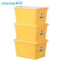 茶花68L塑料收纳箱衣服玩具箱子儿童特大号收纳盒家用书籍整理箱黄色