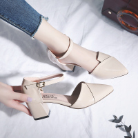 桂兰珊(Guilanshan) 学生粗跟包头凉鞋女夏2020新款仙女时尚百搭清新一字扣尖头高跟鞋