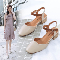 桂兰珊(Guilanshan) 2020新款夏包头中粗跟方头一字扣凉鞋韩版百搭玛丽珍复古奶奶单鞋