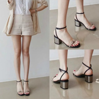 桂兰珊(Guilanshan) 露趾性感高跟鞋2020夏季新款百搭中空粗跟凉鞋女一字扣带罗马鞋子