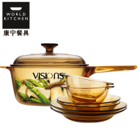 美国康宁(VISIONS)锅具套装 晶彩透明锅2.5升(20.5CM)单柄+PYREX耐热琥珀色透明碗盘6件汤锅煮锅炖锅
