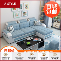 苏宁放心购布艺沙发小户型可拆洗三人四人转角客厅组合出租房套装简约现代A-STYLE家具