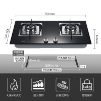帅康 大开孔700*400钢化玻璃 4.2KW大火力燃气灶双灶家用天然气灶具嵌入式煤气灶具70 天然气